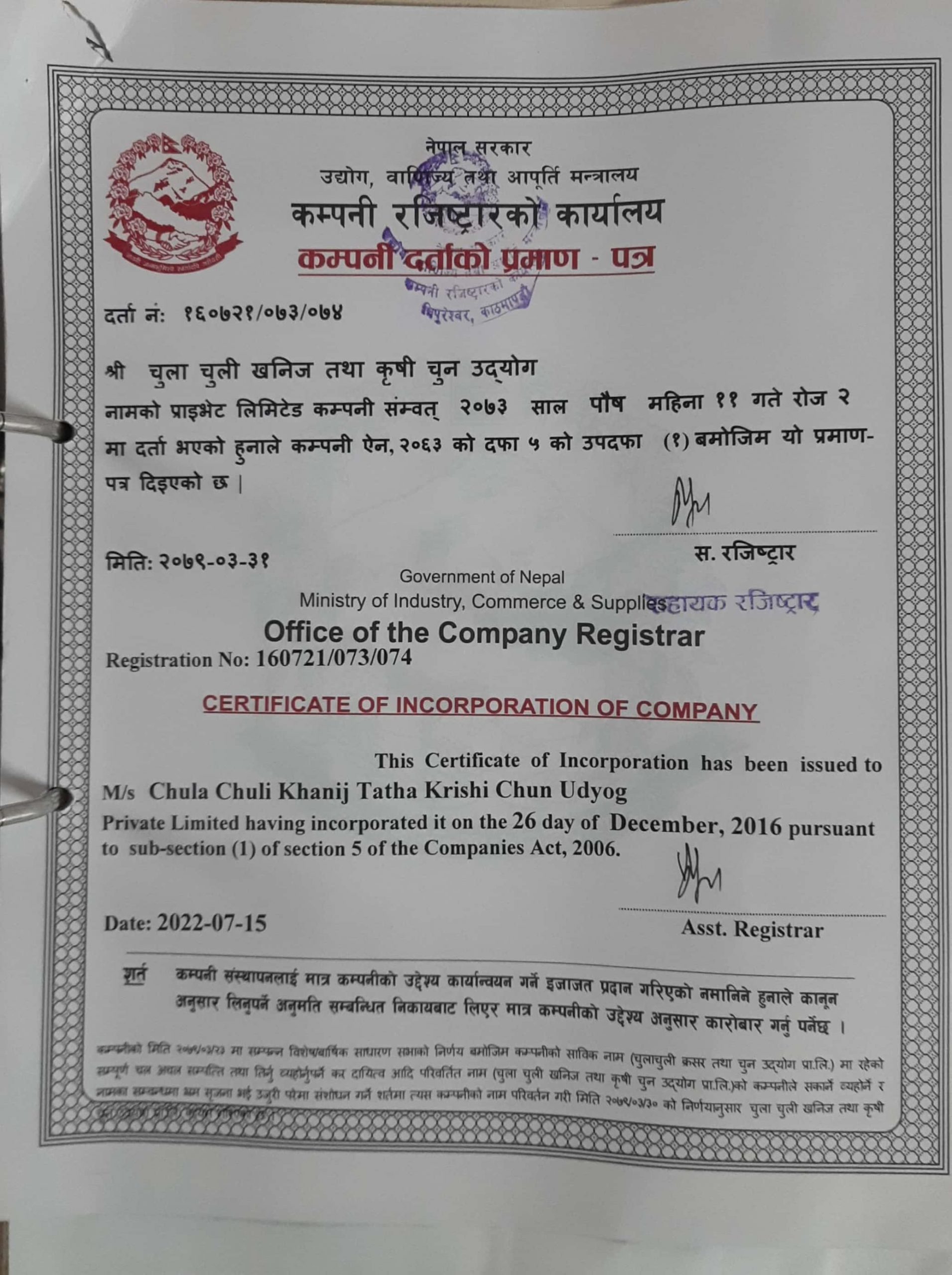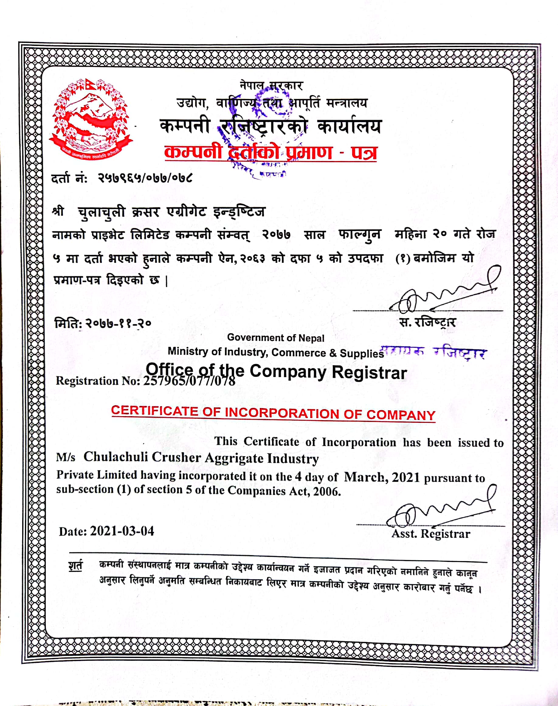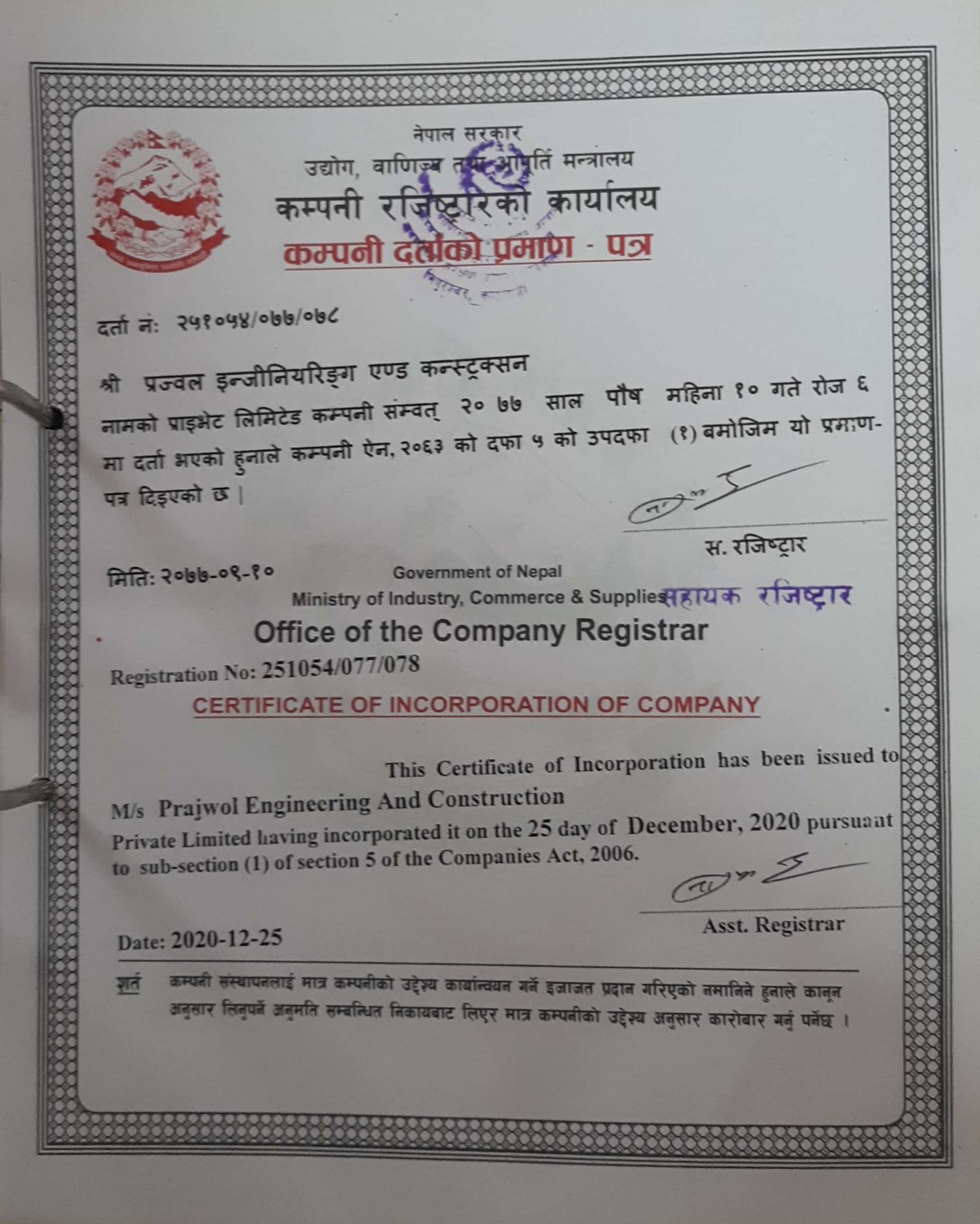 Company Registration Certificate