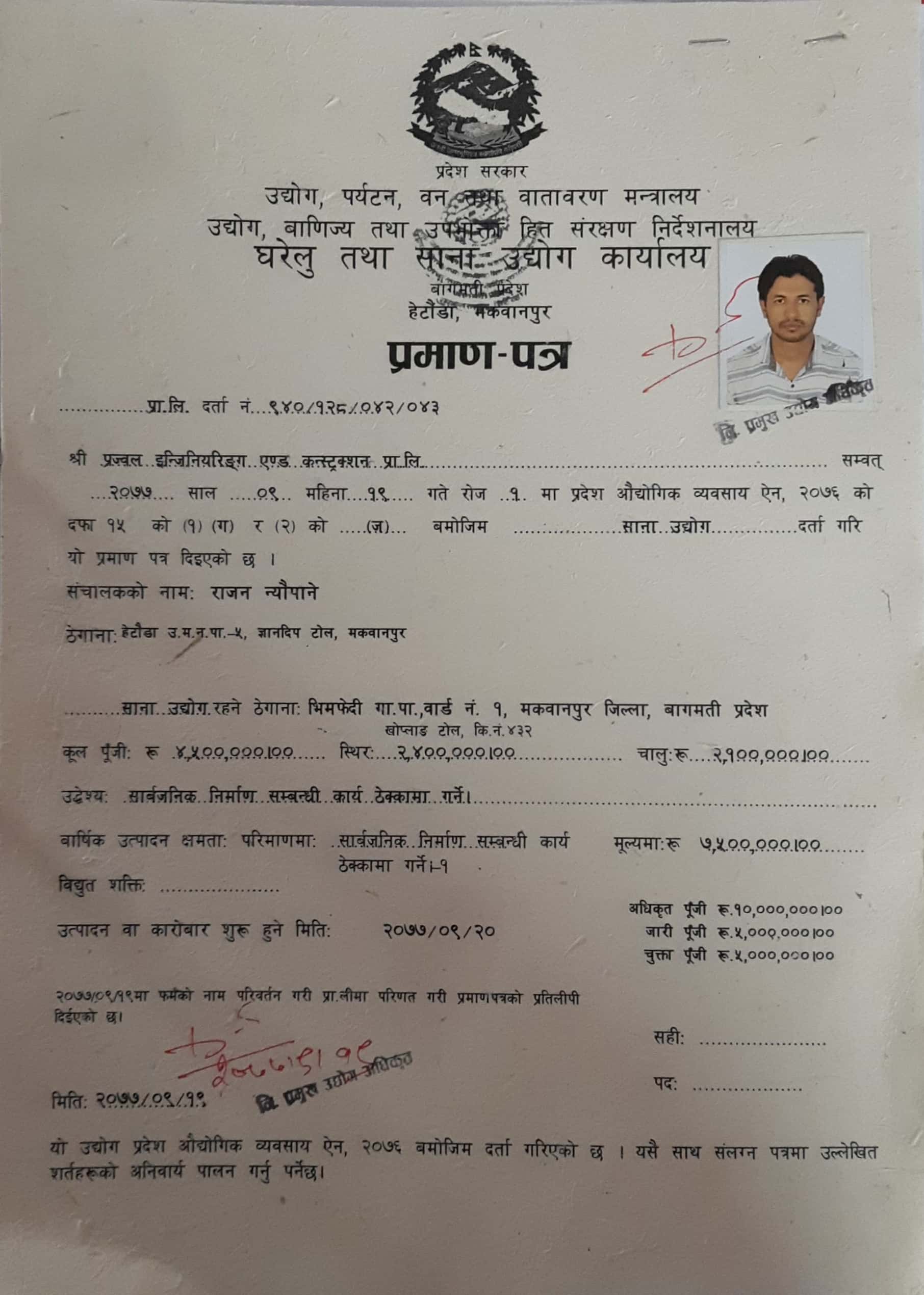 Private Firm Registration Certificate